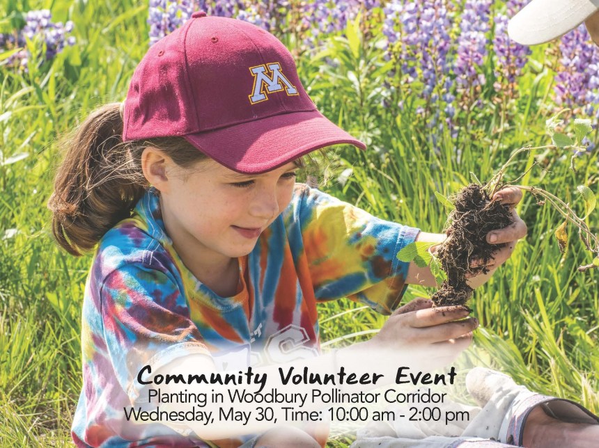 City of Woodbury is also creating a 10-acre pollinator corridor in Woodland Hills Park, along the trail from Lake to Bailey Roads. To help create the corridor, non-profit Great River Greening is seeking 100 volunteers for a planting event on Wed., May 30, 10am-2pm. All ages are welcome, and breakfast, snack and lunch will be provided. To register, contact May Yang at volunteer@greatrivergreening.org or 651-272-3993, or go to GreatRiverGreening.org.