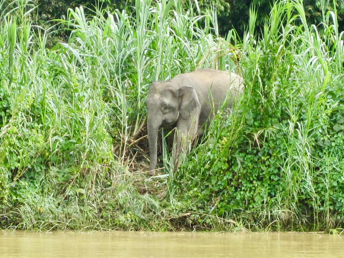 “I think that we are the luckiest people in the world,” my son announced as he tossed me an impish smile from the front of our boat. Yesterday, we’d been thrilled to find a pygmy elephant down by the river’s edge – our guide said it was the first he’d seen in months. Today, we’d stumbled upon a small herd of them. We could hear their loud trumpets echoing in the jungle, along with the crashing sounds of plants and trees being trampled underfoot. Every few minutes, we caught sight of a rounded back or an oversized ear behind elephant sized stalks of grass. Once, a juvenile male stepped fully into view and we all frantically clicked our cameras as he happily munched along the river’s edge.