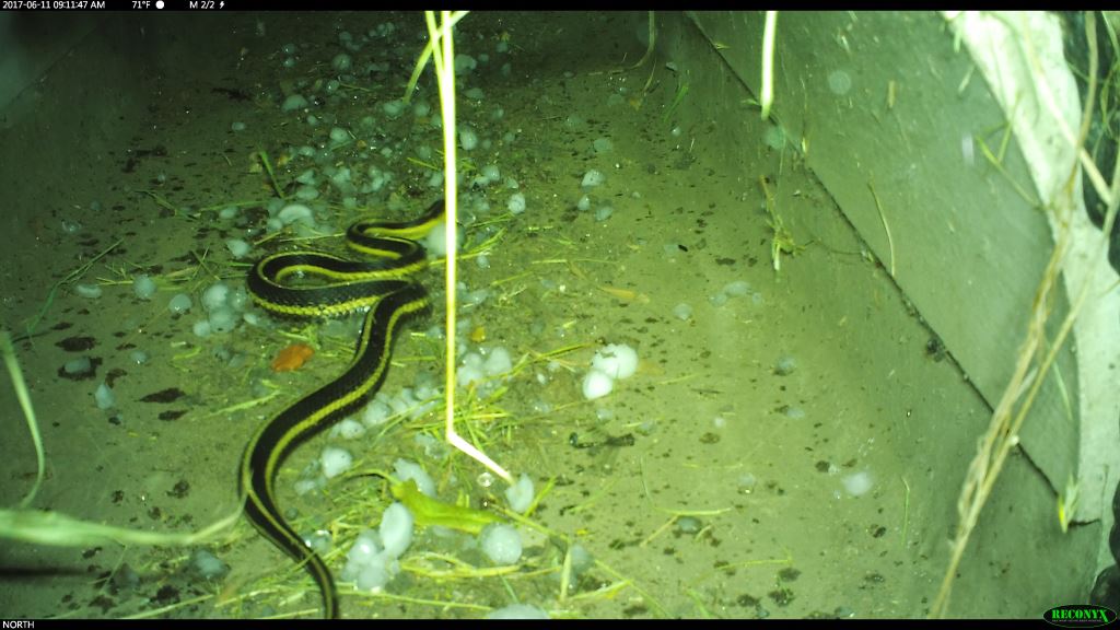 Over the years, Blanding’s turtles have lost vital upland and wetland habitat due to development and farming. The females will travel up to a mile to lay eggs in the spring, and as a result, many are killed by cars every year. When project partners set up a motion-activated camera in the turtle tunnel, they were surprised to see that a wide variety of wildlife were using the crossing in addition to Blanding’s turtles. The camera caught photos of painted turtles, snapping turtles, frogs, snakes, skinks, weasels, opossums and even birds.