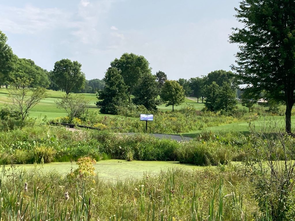 From the trail, you can see streamside buffer plantings within the Oak Glen Golf Course, designed to cool the water for trout.