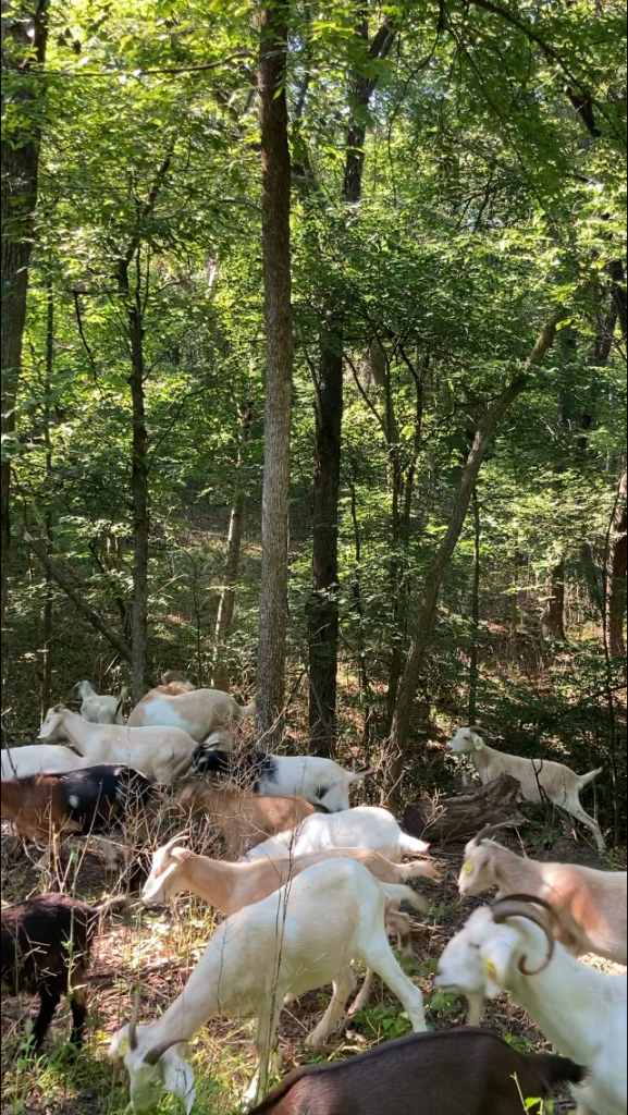 Further south in Cottage Grove, visitors can find goats grazing on buckthorn and garlic mustard along the steep, wooded hillsides in Cottage Grove Ravine Regional Park. A dry stream bed winds along a paved trail through the park, leading to the lake below.