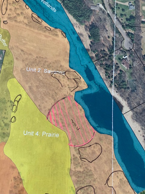 The habitat management plan provide management guidelines for different areas on the property, including areas to be restored to prairie and oak savanna.
