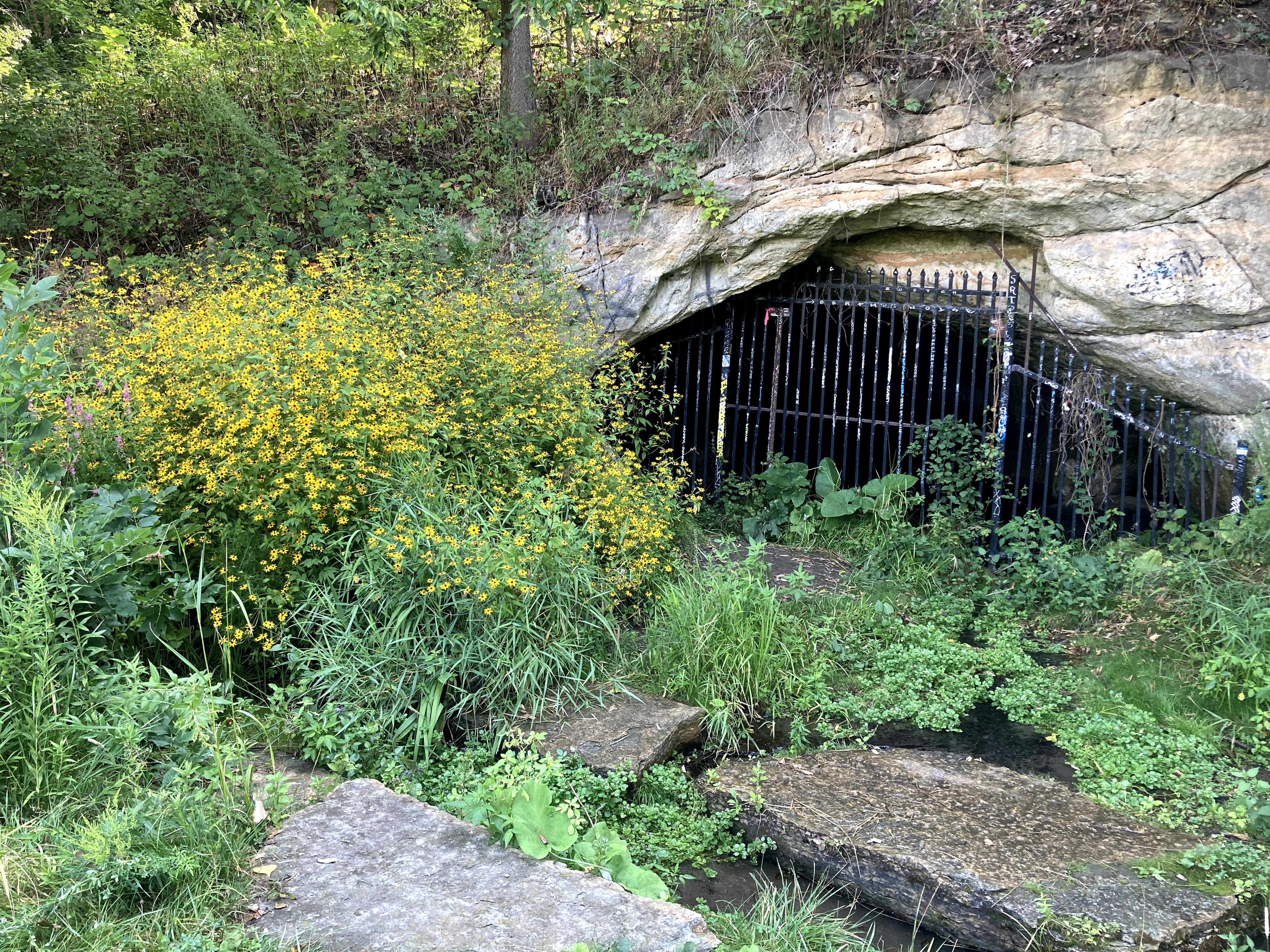 As he talks, Wegner leads our group of watershed educators through what is now a semi-wild field, dotted with trees and wetlands. The spring, cave and bluffs are still here. Phalen Creek and Trout Brook are not.