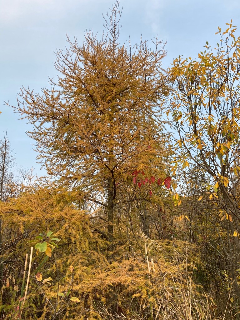 Tamarack are a unique type of conifer, common in northern Minnesota, with needles that turn gold and drop in the fall like a deciduous tree. They thrive in acidic, nutrient-poor wetlands, peaty lakeshores, and along boggy edges of streams; can live to be more than 300 years old; and were documented to be the most common type of tree in Minnesota at the time of European settlement.