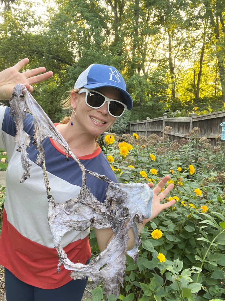 The underwear were actually part of a soil health experiment called “Soil Your Undies” that I learned about this spring. To participate, simple bury a pair of 100% cotton underwear in your yard or garden, and then dig them up again six to eight weeks later. If you have healthy soils with plenty of microbes, the underwear will be highly decomposed by the time you dig them up. If not, you might need to take steps to better nurture your soil. You can also do the experiment with a cloth handkerchief or square of fabric, but that would be nowhere near as fun and also won’t give the painters anything to talk about.