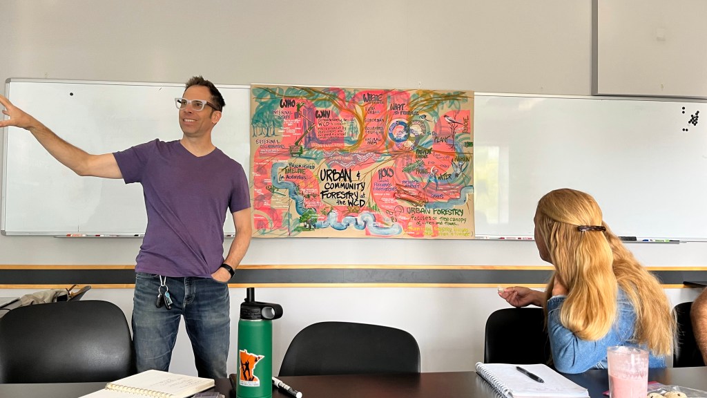 Foss shares ideas about how Washington Conservation District might build a community forestry program to support climate resiliency initiatives.