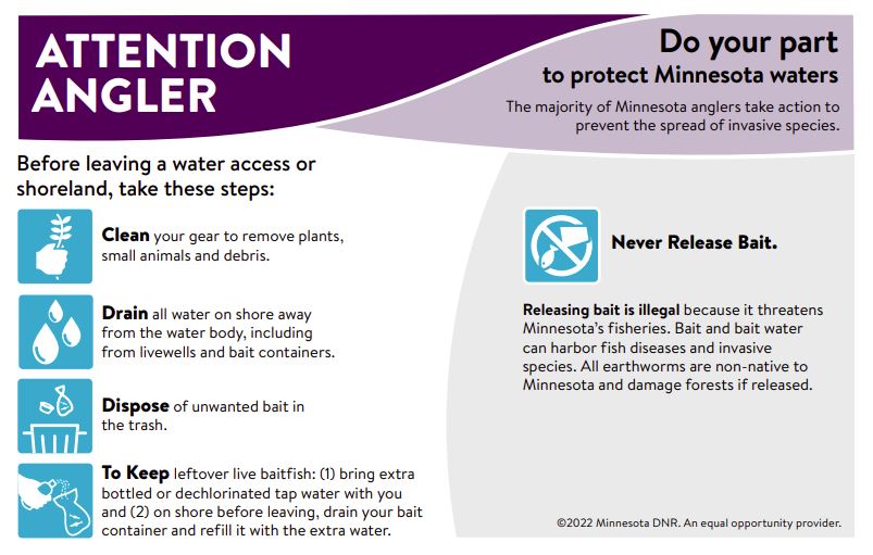 Whether you’ve got your tackle box packed and ready to go, or are waiting for a quieter day to fish, there are several simple steps you can take this fishing season to help protect our Minnesota lakes from aquatic invasive species (AIS).