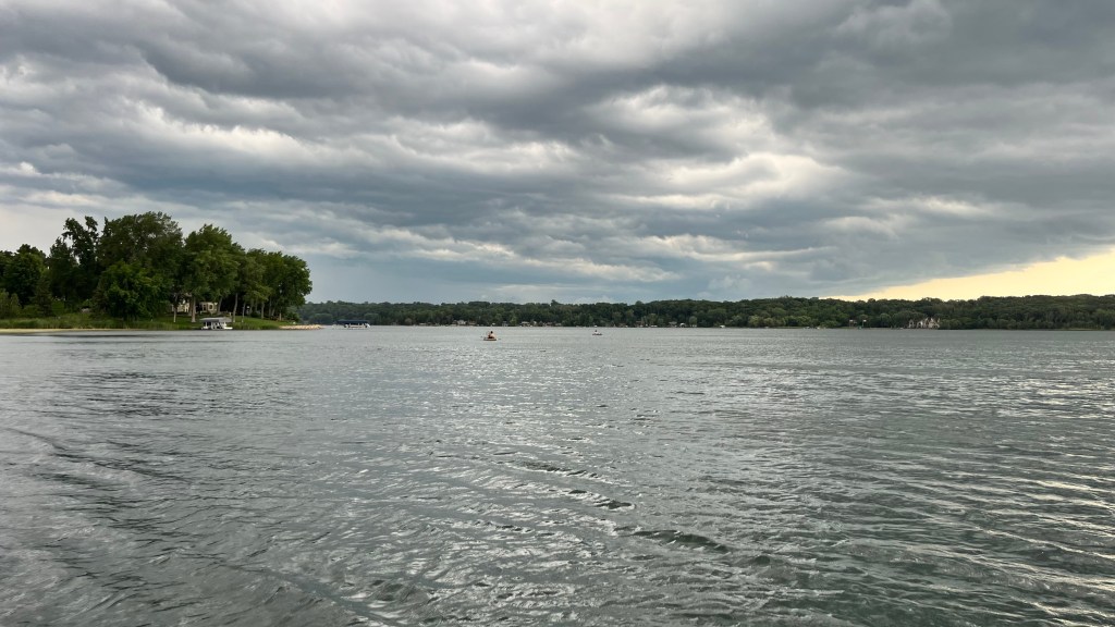It’s a sweltering summer’s evening – 91°F and humid – and a wall of black storm clouds is rolling in from the west. Tom Langer, a fisheries biologist with the Carnelian-Marine-St. Croix Watershed District, and Mike Isensee, the watershed district administrator, are standing waist deep in water in Big Carnelian Lake, slowly dragging a seining net to catch fish along the shoreline.