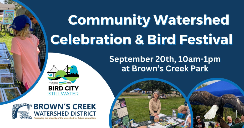 Want to learn more? Join Brown’s Creek Watershed District for a tour on Tuesday, Aug. 12, 6:30-8pm at Brown’s Creek Park (8312 Neal Ave N, Stillwater). There will also be an opportunity to see and learn about stream improvements along Brown’s Creek at a Community Watershed Celebration and Bird Festival on Saturday, Sept. 20, 10am-1pm (also at Brown’s Creek Park). The annual event features live raptors, environmental education stations, crafts, games, live music, and free ice cream. New this year, there will also be a bird costume contest for kids and adults.