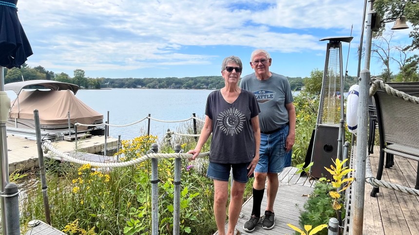 Wildlife sightings are common at Jane and Joe Lendway’s cabin on Big Carnelian Lake in northern Washington County. “A couple of years ago, we were sitting in the backyard and I heard rustling near the boat,” Joe says. “I looked down and saw this cute little face looking up at me. It was a baby otter!” The Lendways also see turtles along the lakeshore, as well as butterflies and hummingbirds that visit the native blooms in their gardens. “We were one of the first ones to get involved with the Carnelian-Marine-St. Croix Watershed District in 2007 when they first offered grants to help people restore their shorelines,” Joe explains. “Before that, we had a sand beach but it was always eroding when it rained. Now that doesn’t happen anymore – even the wave action doesn’t tear up the shore.”