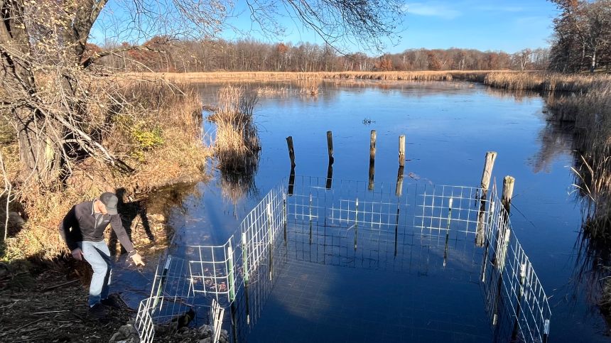“The way it works is that we construct a culvert exclusion fence or a notch exclusion fence that makes it harder for beavers to build a dam,” Riesgraf explains. “When beavers see a culvert [at the outlet of a lake or wetland], they see a small hole that is easy to block to back-up water and gain more real estate. The fence increases the perimeter that the beavers would have to dam from 6 feet to 30 feet. They’ll still try, but it will take them a lot longer to get the job done.”
